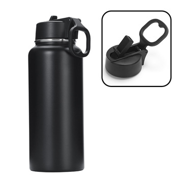 ขวดน้ำสุญญากาศหุ้มฉนวนผนังสองชั้นทำจากสเตนเลสสตีลพร้อมหลอดและซิลิโคนจับ1L ความจุขนาดใหญ่
